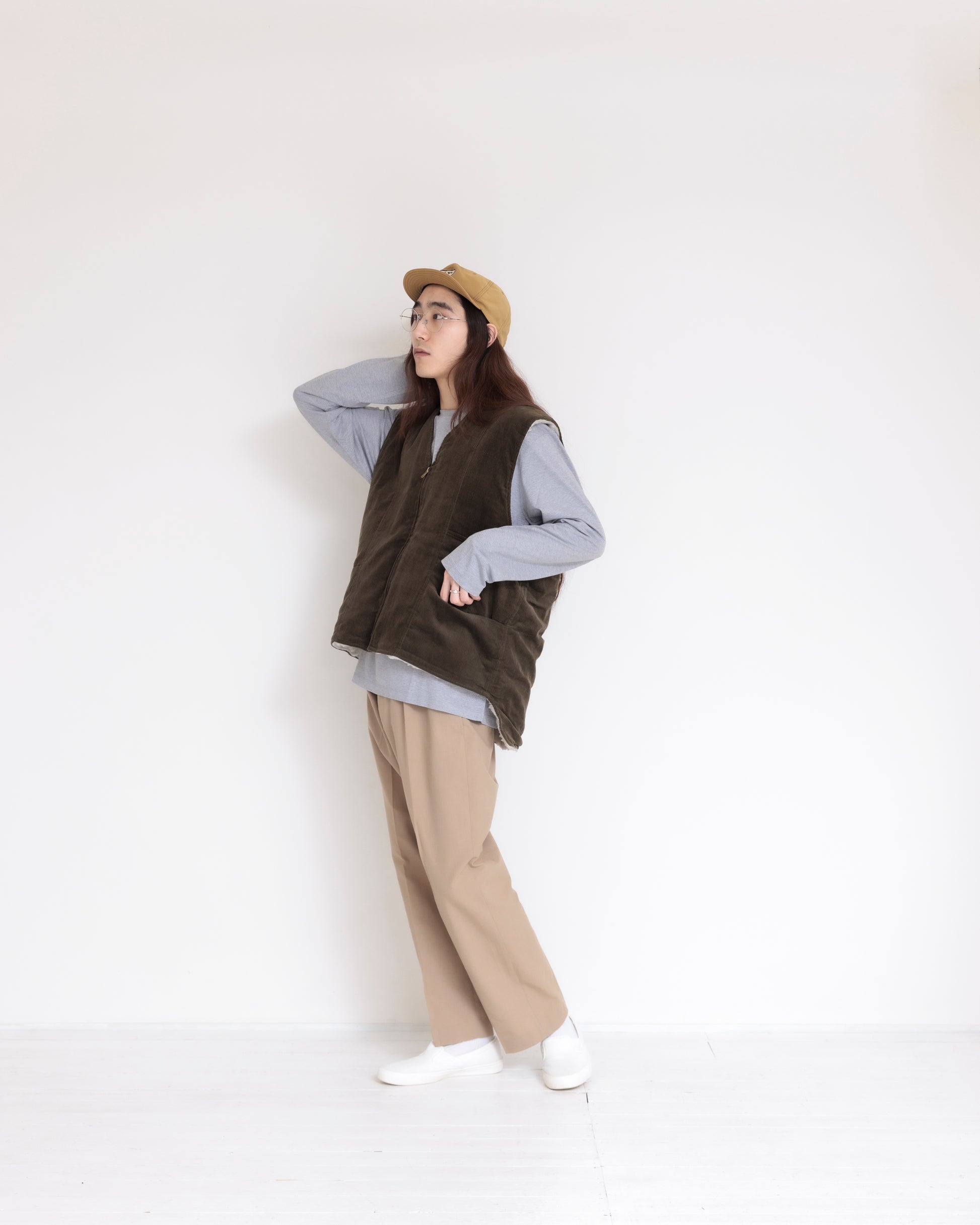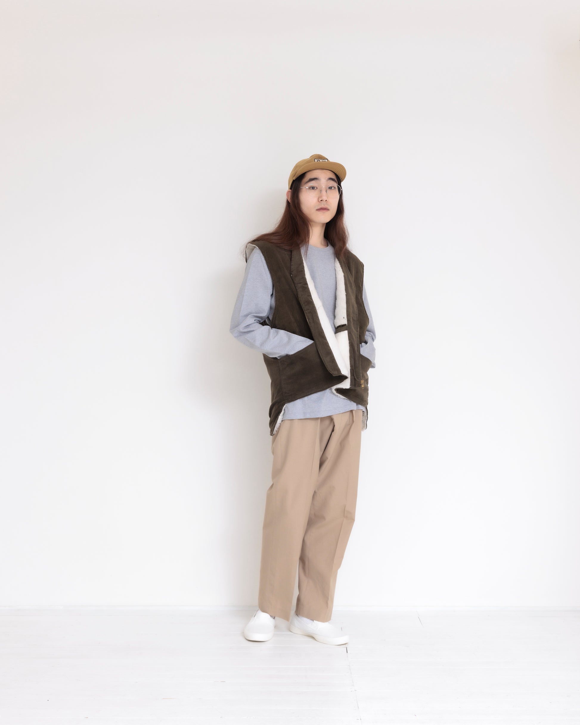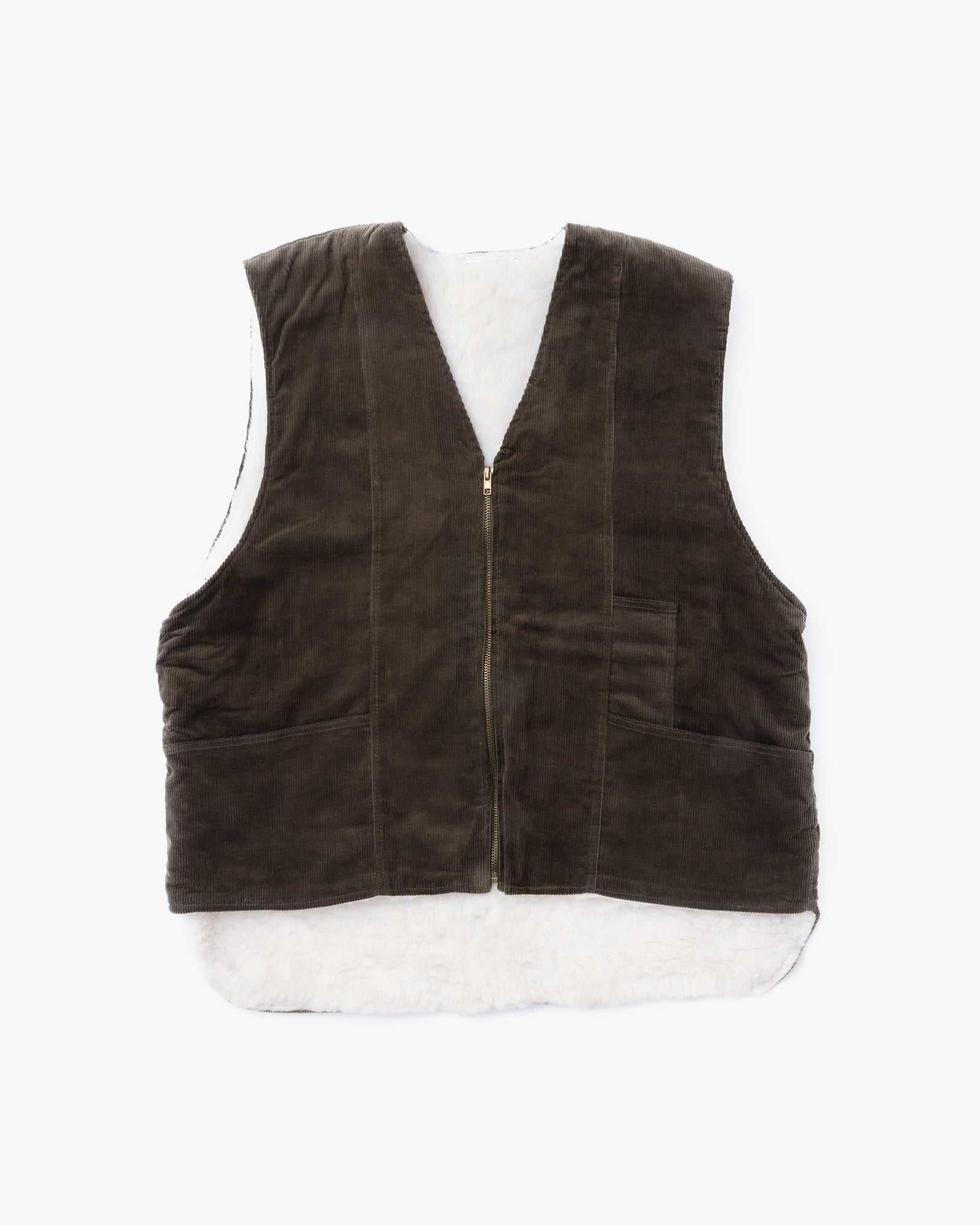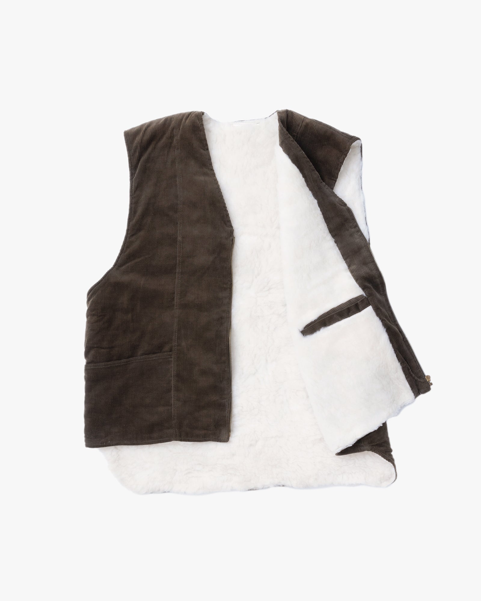 Corduroy Wool Boa Vest (Khaki/White)