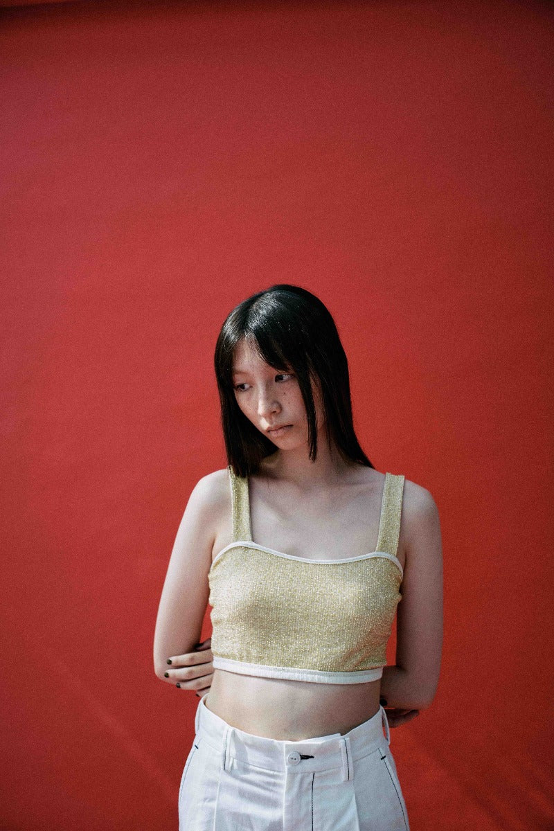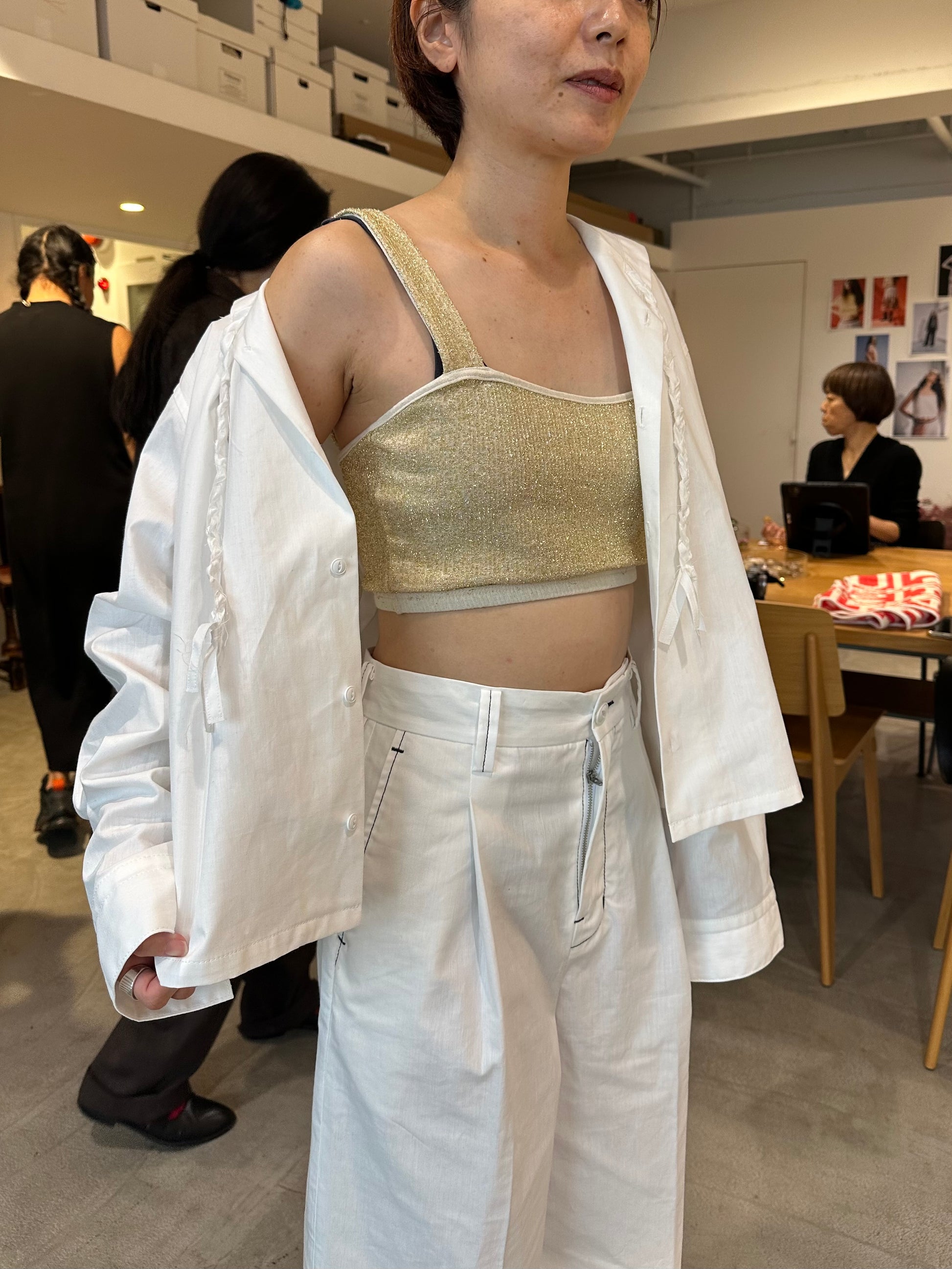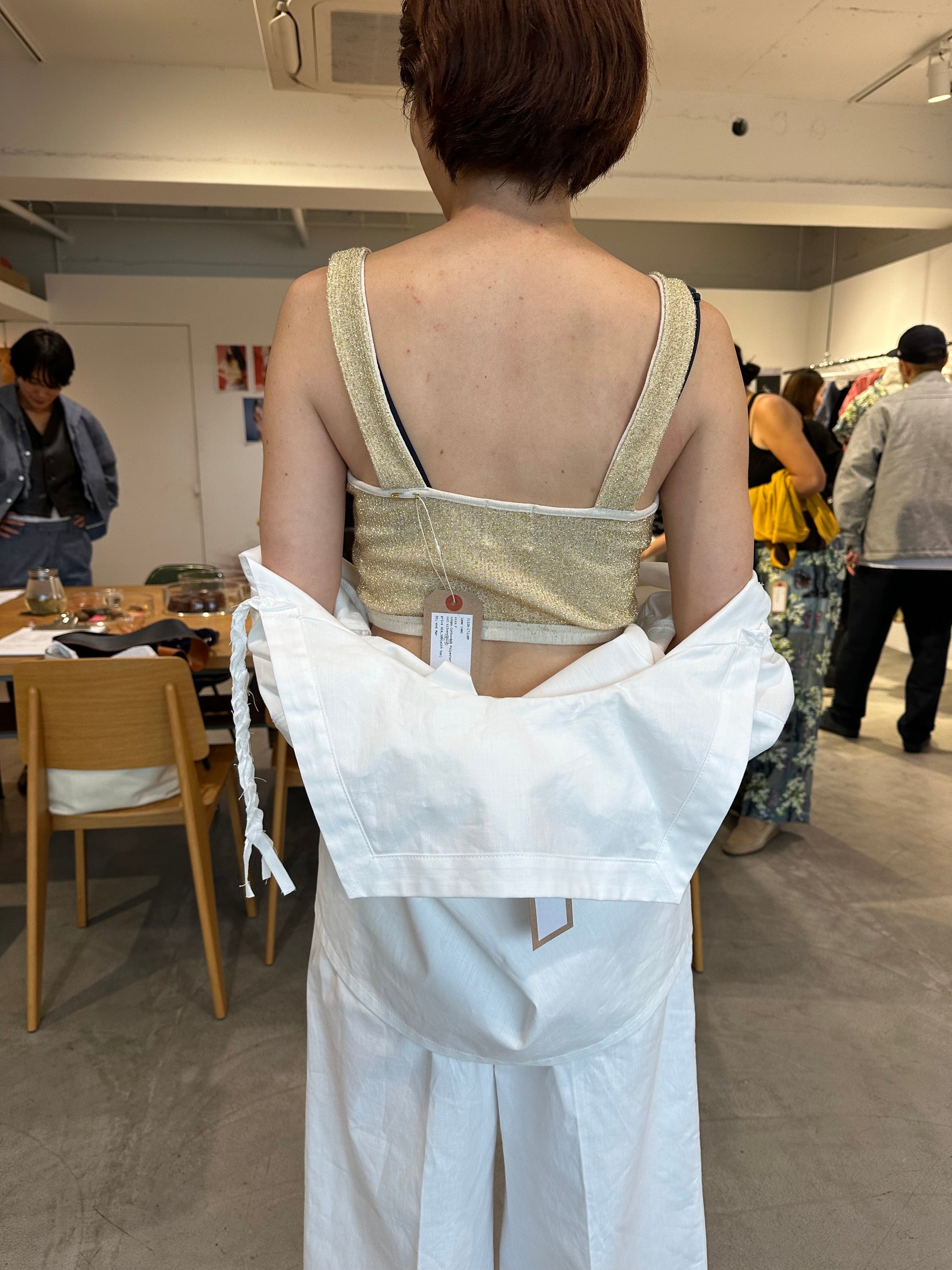no. JL226-CT1109 size: F col: silver,gold quality: Cotton86% Polyester9.3% Nylon4.7% del: march shoulder: 25cm bust: 72cm total length: 13.6 cm