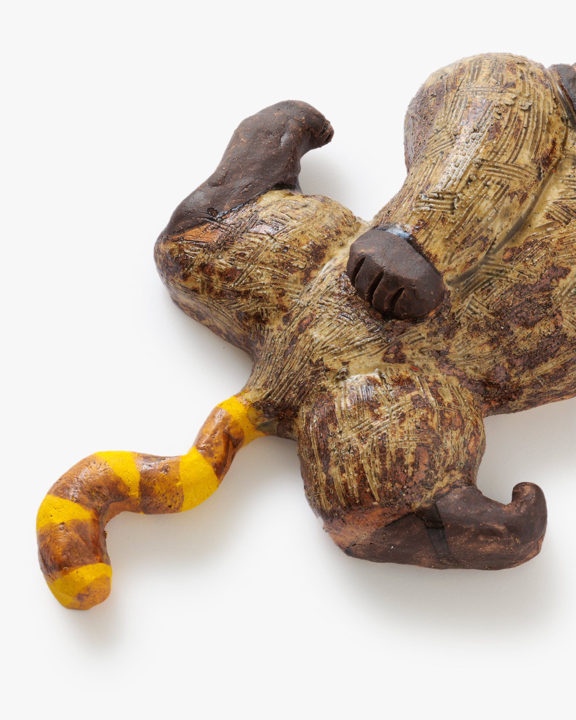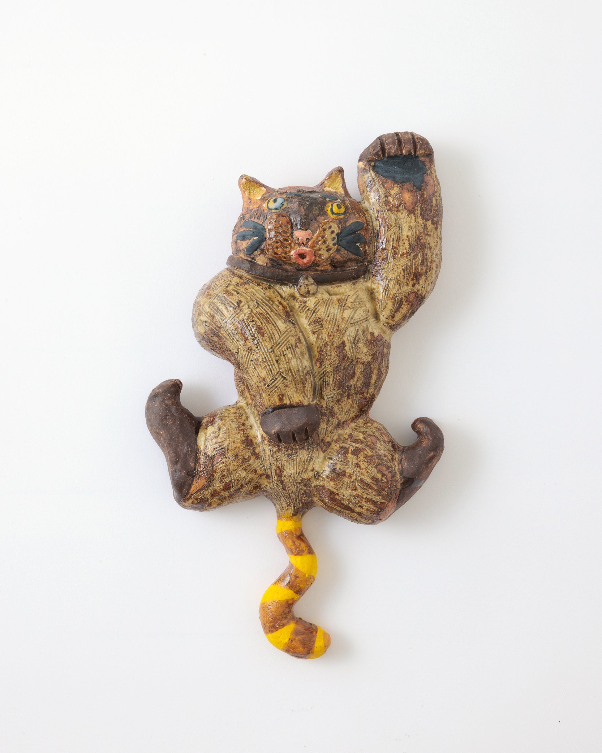 背面に穴が空いており、壁に釘などで引っ掛ける(もしくは釣って)飾っていただくタイプの作品となっております。