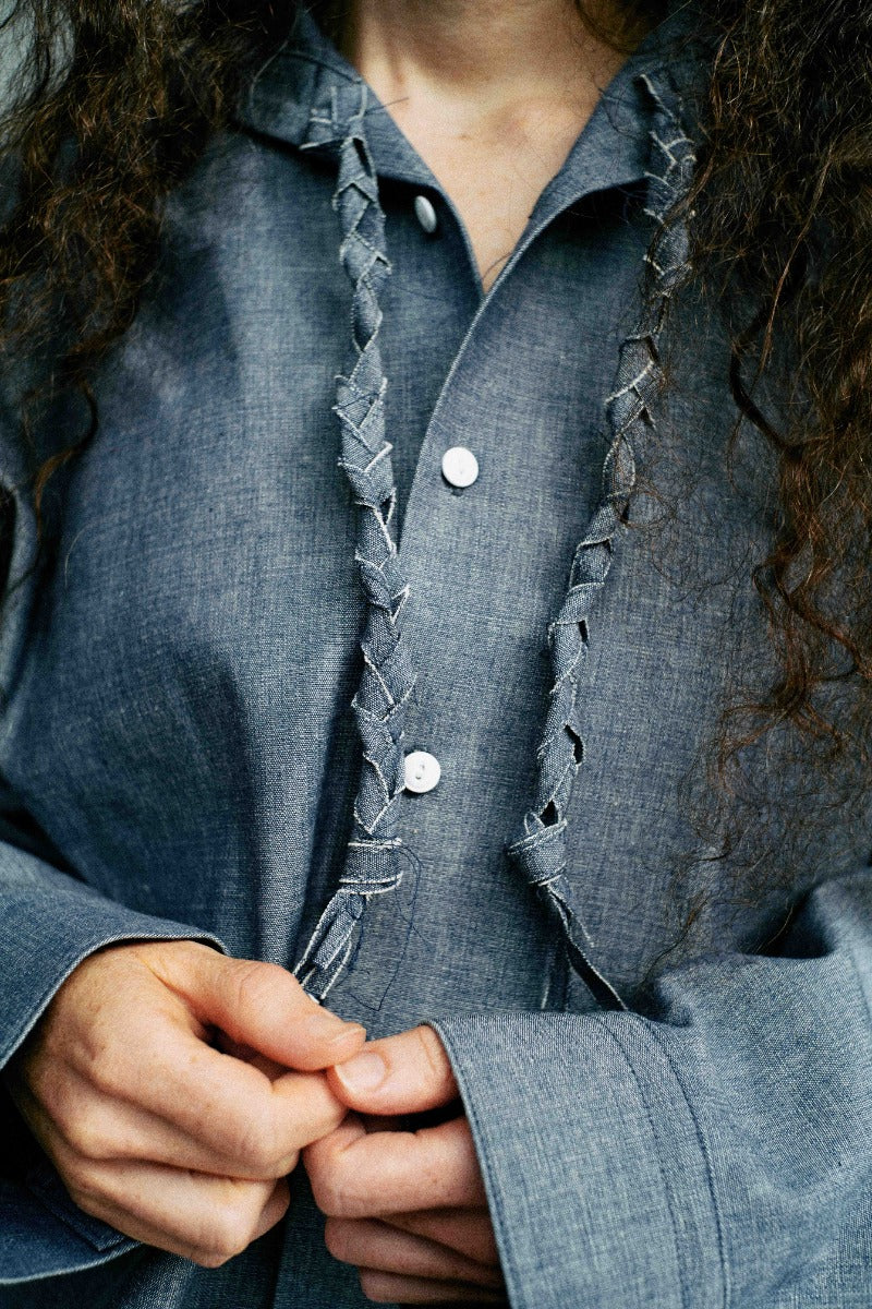 no. JL226-SH1118 size: F col: indigo,white,black quality: Cotton100% del: march shoulder: 51cm bust: 125cm sleeve length: 61cm total length: 58cm