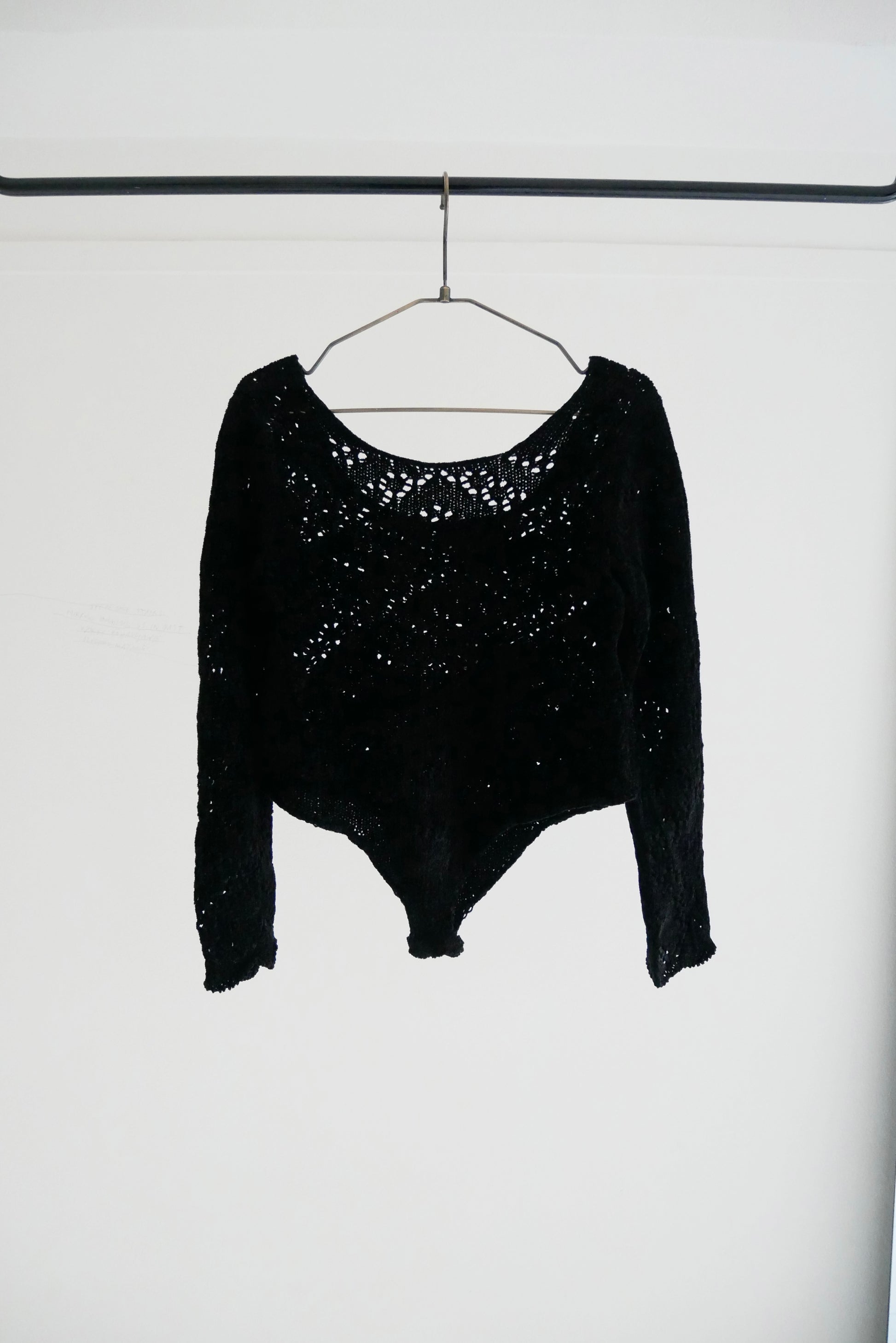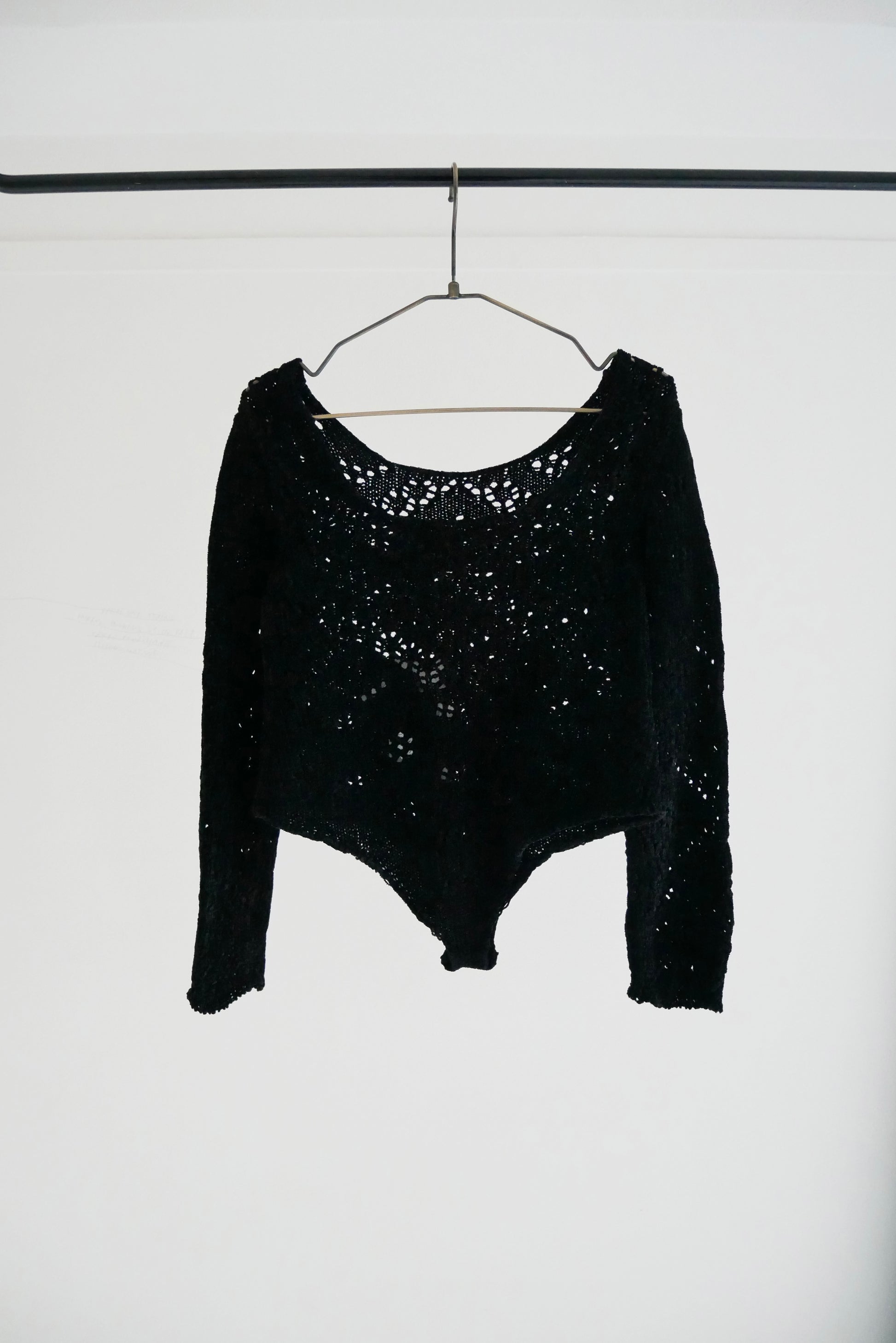 シルク100%のモール糸を使用して作成されたレース素材のボディスーツ。