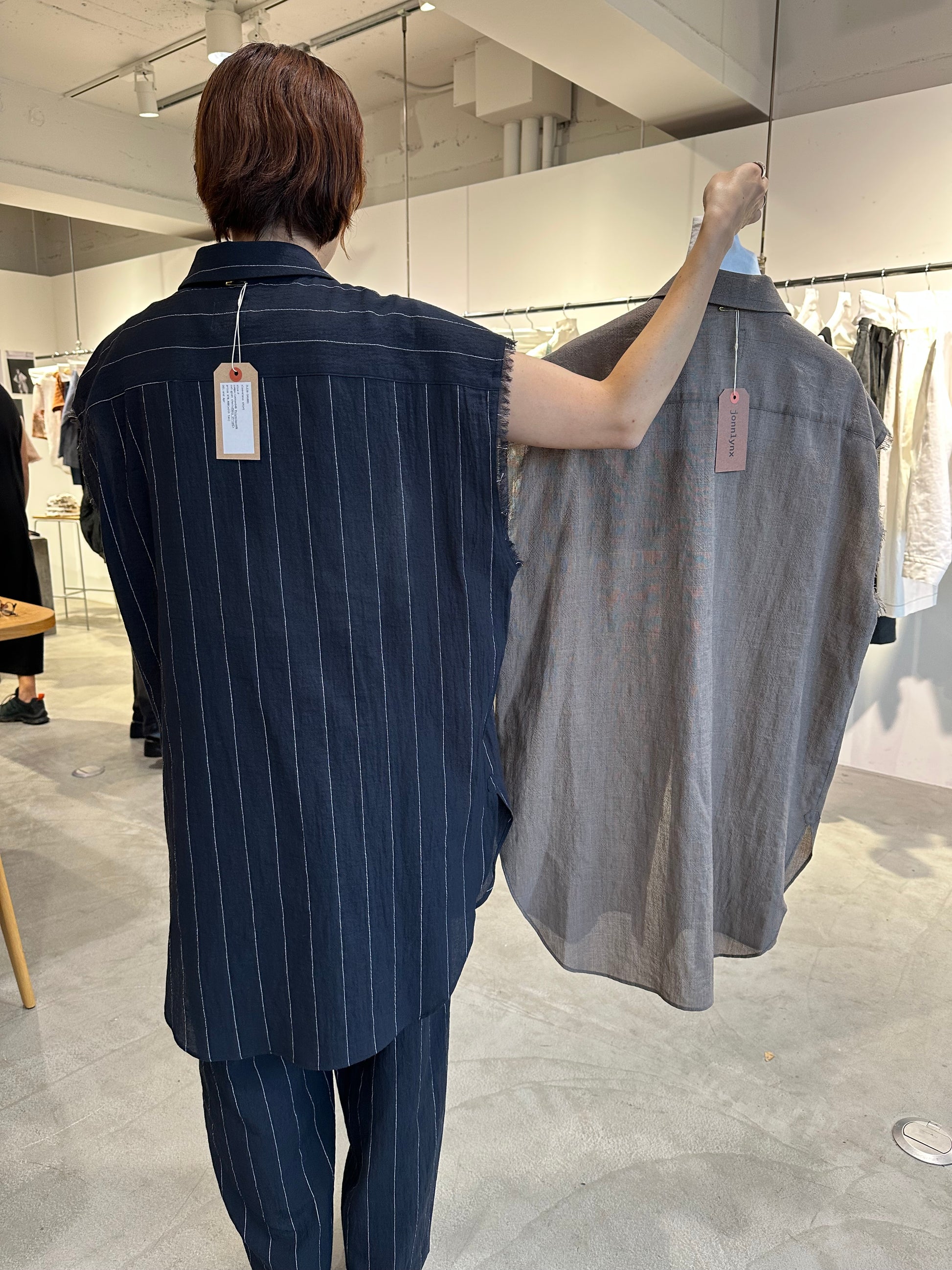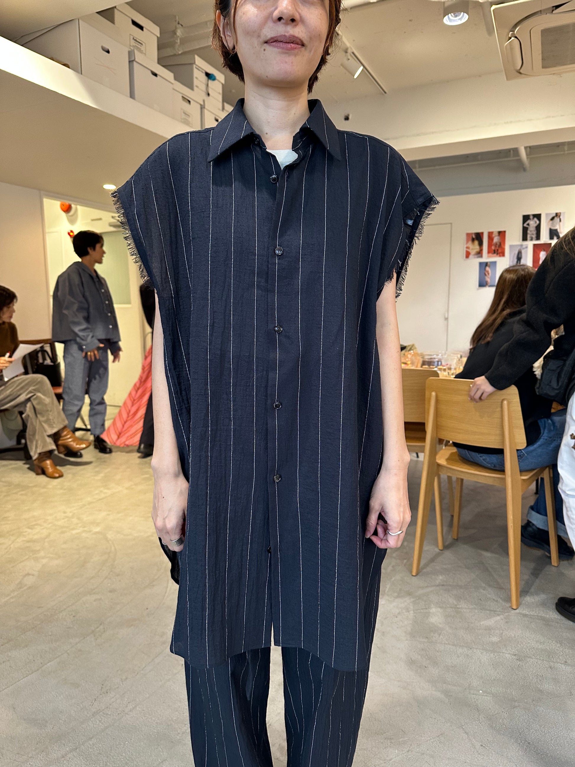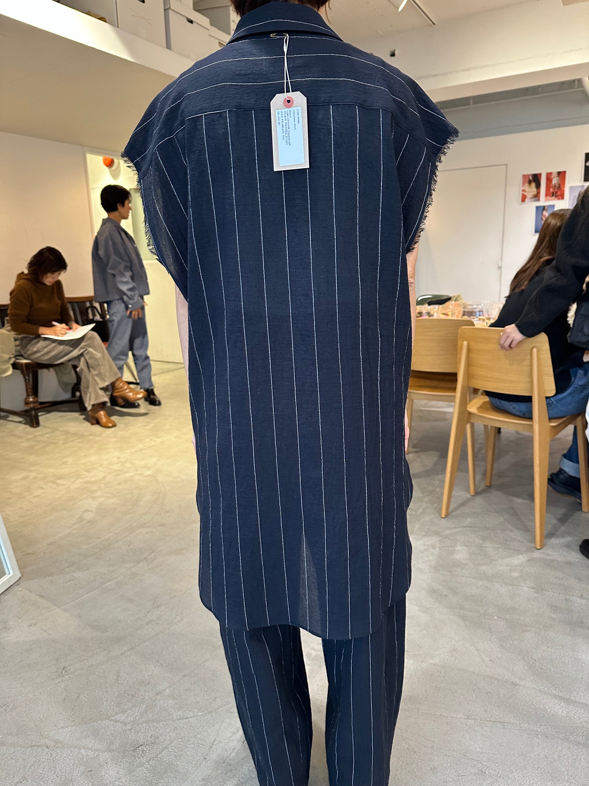 no. JL226-SH1081 size: F col: glen check, navy stripe quality: glen check : cotton54% Polyester46% / stripe : cotton53% polyester47% del: may shoulder: 58cm bust: 126cm total length: 87.5cm