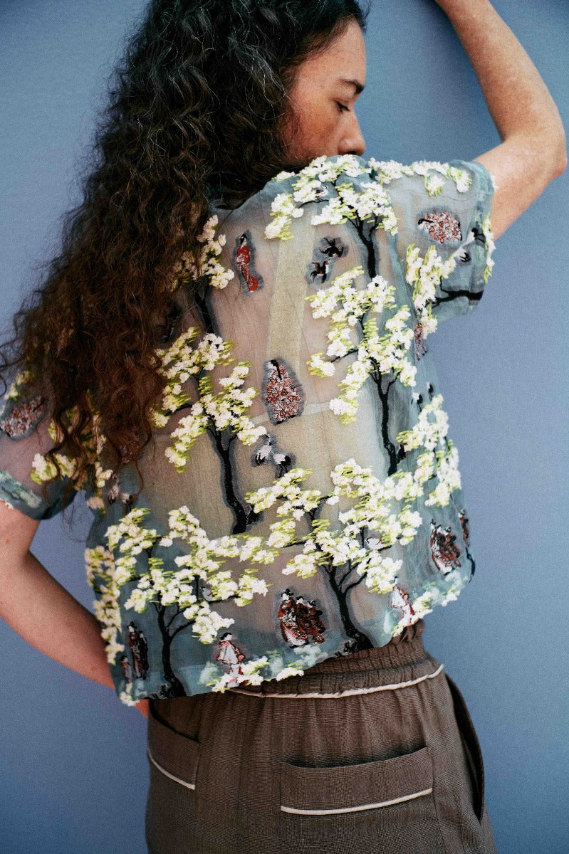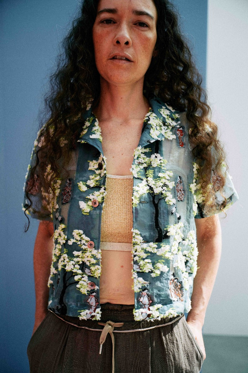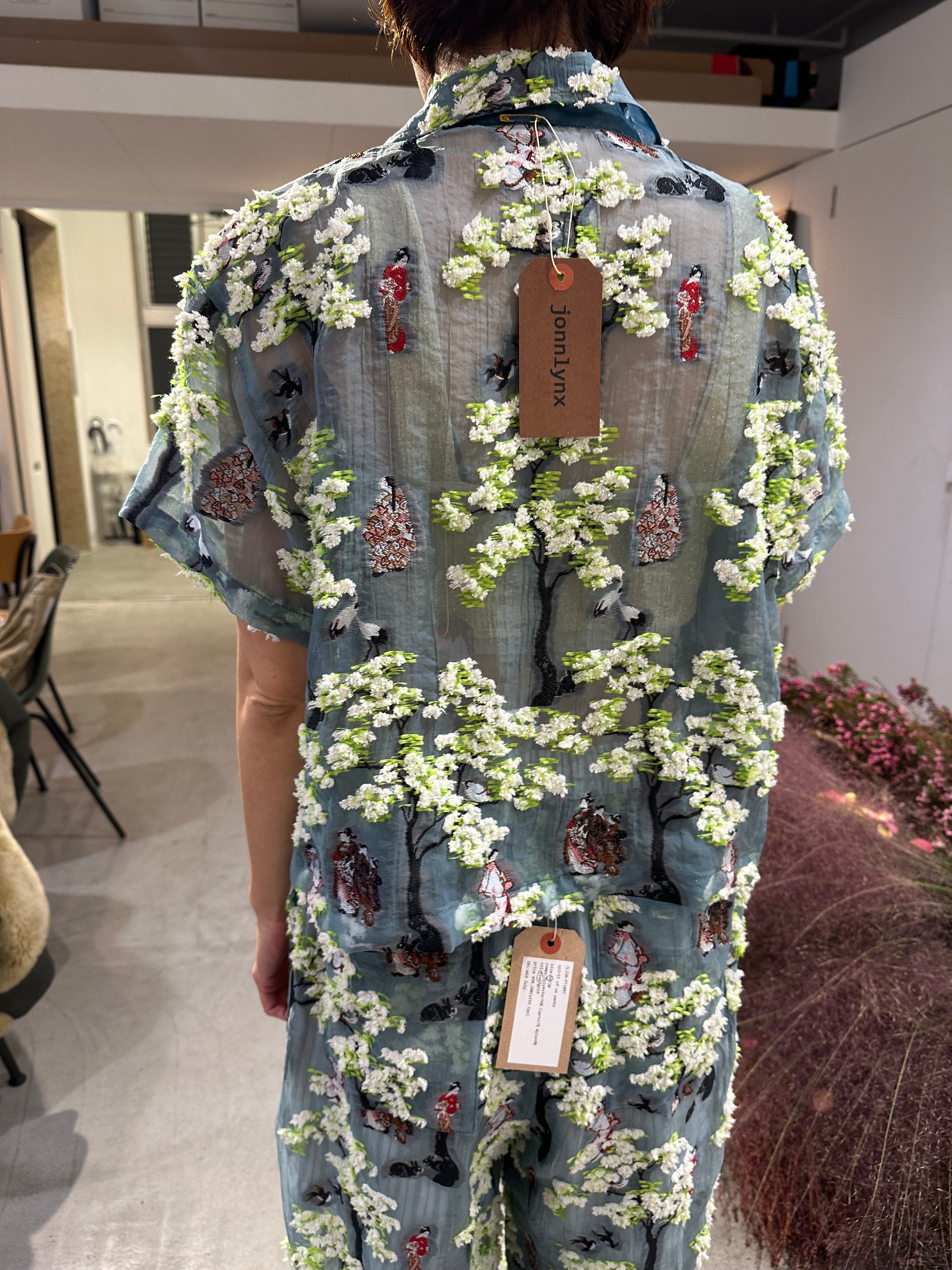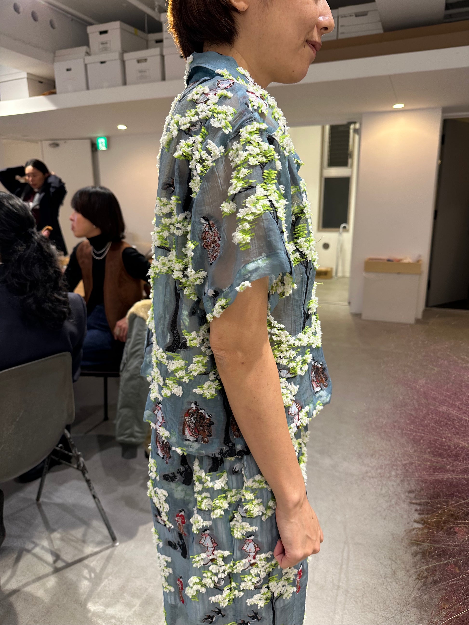 no. JL226-SH1096 size: F col: blue,gold quality: Polyester34% Cupro30% Nylon19% Cotton14% del: july shoulder: 45cm bust: 106cm sleeve length: 16.5cm total length: 48.5cm